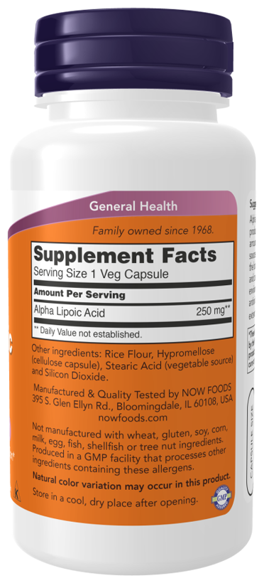 NOW Alpha Lipoic Acid 250 mg, 60 капсул