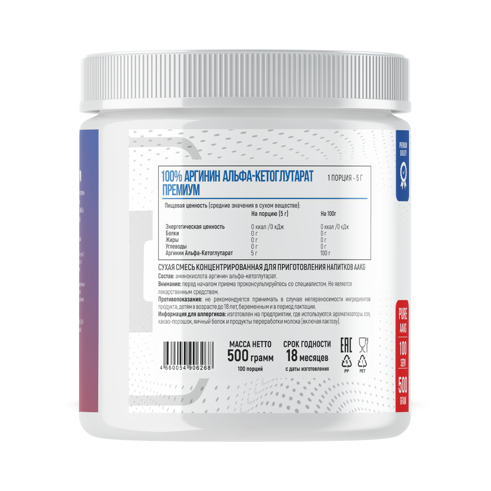 100% эффективен как для начинающих, так и для опытных спортсменов. Изготовлен из премиального сырья и тщательно очищен. Формула не содержит искусственных стимуляторов, красителей и ароматизаторов. Вы получаете исключительно чистый AAKG в оптимальной форме для быстрого и полного усвоения и достижения максимального эффекта: расширения сосудов и притока крови к мышцам.