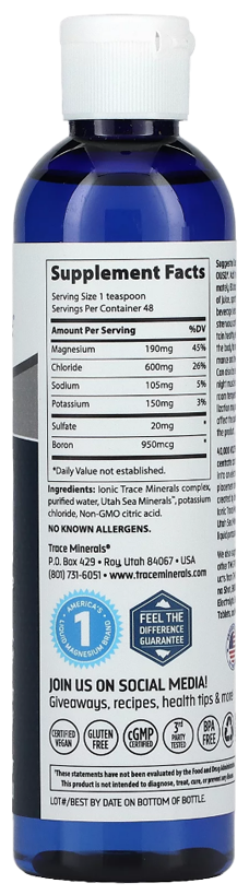 | микроэлементы Concentrace®, очищенная вода, Utah Sea Minerals ™, хлорид калия, лимонная кислота без ГМО. | ||