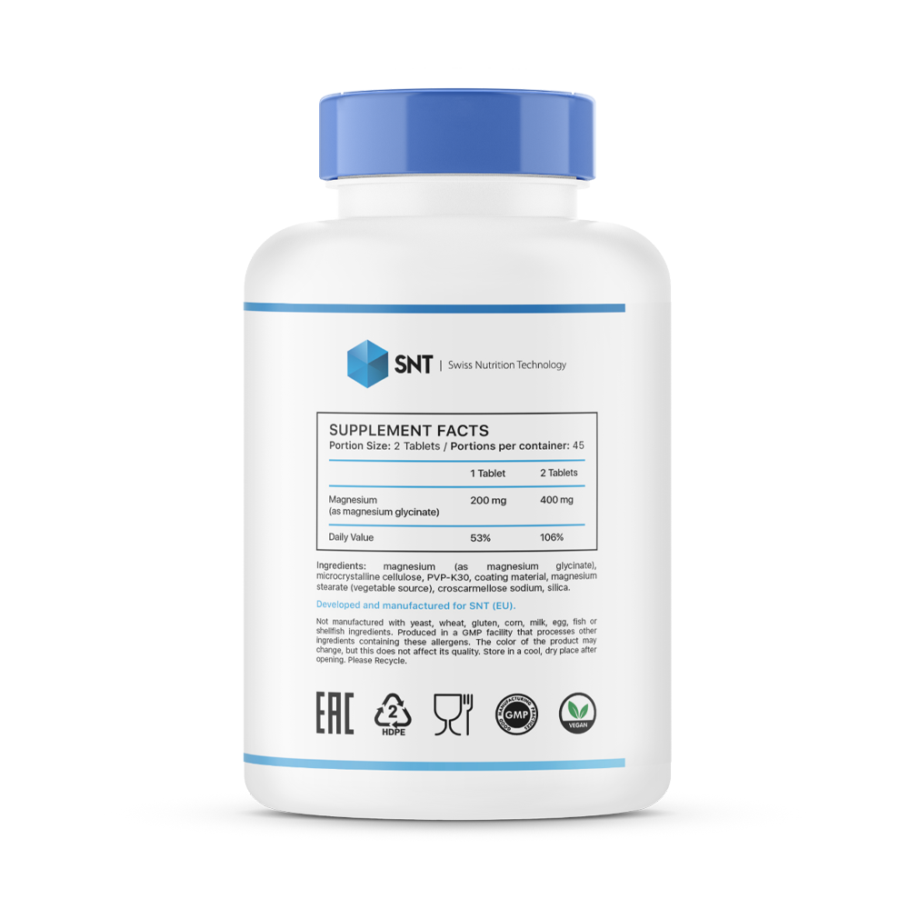 Magnesium Glycinate - это препарат магния, который обладает высокой биодоступностью и хорошо переносится организмом. Дополнительный прием поможет вам нормализовать сердечный ритм, снизить АД, купировать судороги в мышцах, повысить жизненный тонус и настроение, умственную и физическую активность, уменьшить боли в суставах.