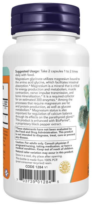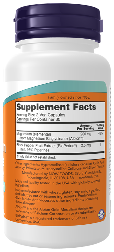NOW Magnesium Glycinate with BioPerine 60 капсул
