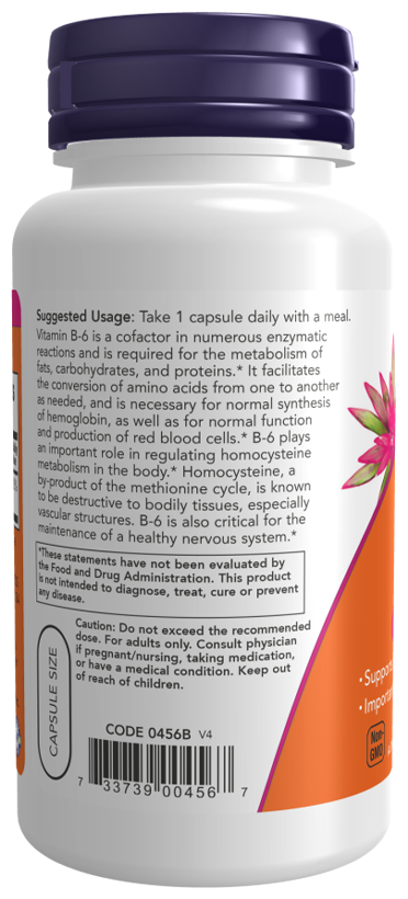 B-6 играет важную роль в регулировании метаболизма гомоцистеина в организме. Гомоцистеин, побочный продукт известно, что цикл метионина разрушителен для тканей организма,особенно сосудистые структуры. Витамин В6 также имеет решающее значение для поддержания здоровой нервной системы.