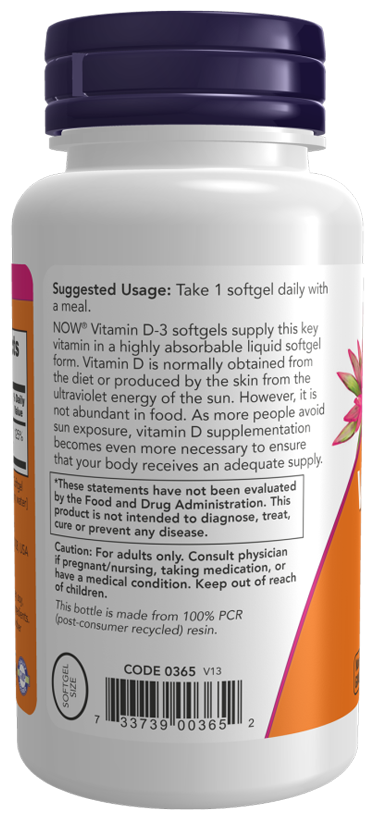 NOW Vitamin D-3 1000 IU, 180 капсул